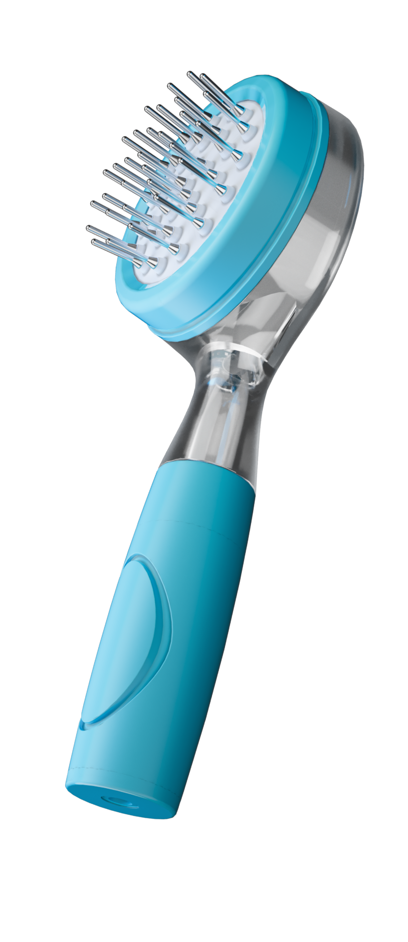 It is more convenient and quicker to use than all existing root touch-up brushes and combs. With Rollerball Root Touch-Up Brush the user does not need to separate hair roots section by section during hair color application. The user just needs to brush his/her hair like they normally would during routine hair brushing. The rollerball nozzles located at the ends of the brush bristles evenly disperse hair color over hair roots while touching the scalp during hair brushing. It takes only a few minutes for the user to cover up to 12 mm of all the hair roots of the entire scalp with color using Rollerball Root Touch-Up Brush.